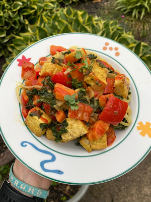 And finally, here's an AMAZING Coconut Peanut Curry Tofu Noodle dish I made. I whipped up a coconut curry sauce using coconut milk, curry powder, peanut butter, garlic, and lime juice, and then I tossed that with air-fried tofu, rice noodles, and stir-fried veggies. I wish I had more leftovers!