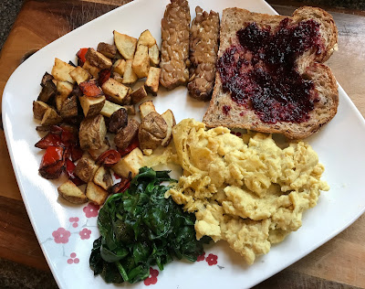 I'll do a full post on Just Egg soon, but for now I'll just say, this stuff is amazing! It really does taste and look like real eggs. Also in my burrito: roasted potatoes, tempeh bacon, spinach, vegan cheese, and salsa.